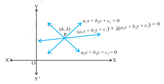 2. Similarly we can prove that equation (1) is satisfied by the point of intersection of the two given lines for λ = 4, 5, 6 ……. . It verifies that the equation of a line passing through the point of intersection of the equations a1x + b1y + c1 = 0 and a2x + b2y + c2 = 0 is of the form